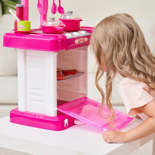 Com a ReplayKids, a diversão é garantida! Esta encantadora cozinha infantil apresenta em sua bancada diversos acessórios coloridos e divertidos, tudo dentro de uma maleta compacta. Com efeitos de som e luzes, a Princess Kitchen proporciona uma experiência sensorial envolvente para os pequenos chefs.