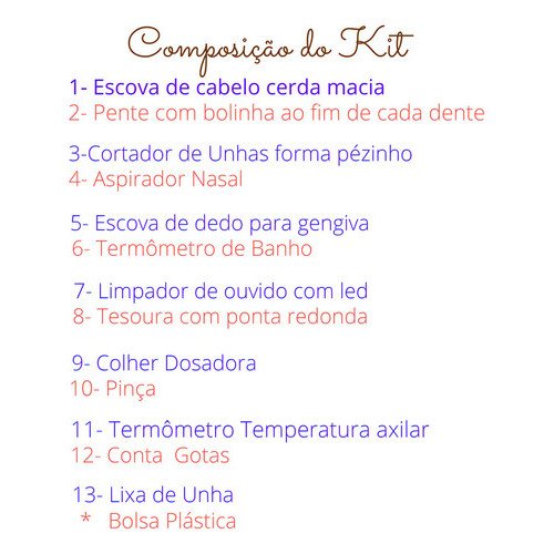 Kit Cuidados e higiene do Bebe recém nascido (13 peças + Bolsa)